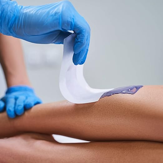 3️⃣ Apply a waxing strip, press firmly, and pull off quickly against the hair growth.