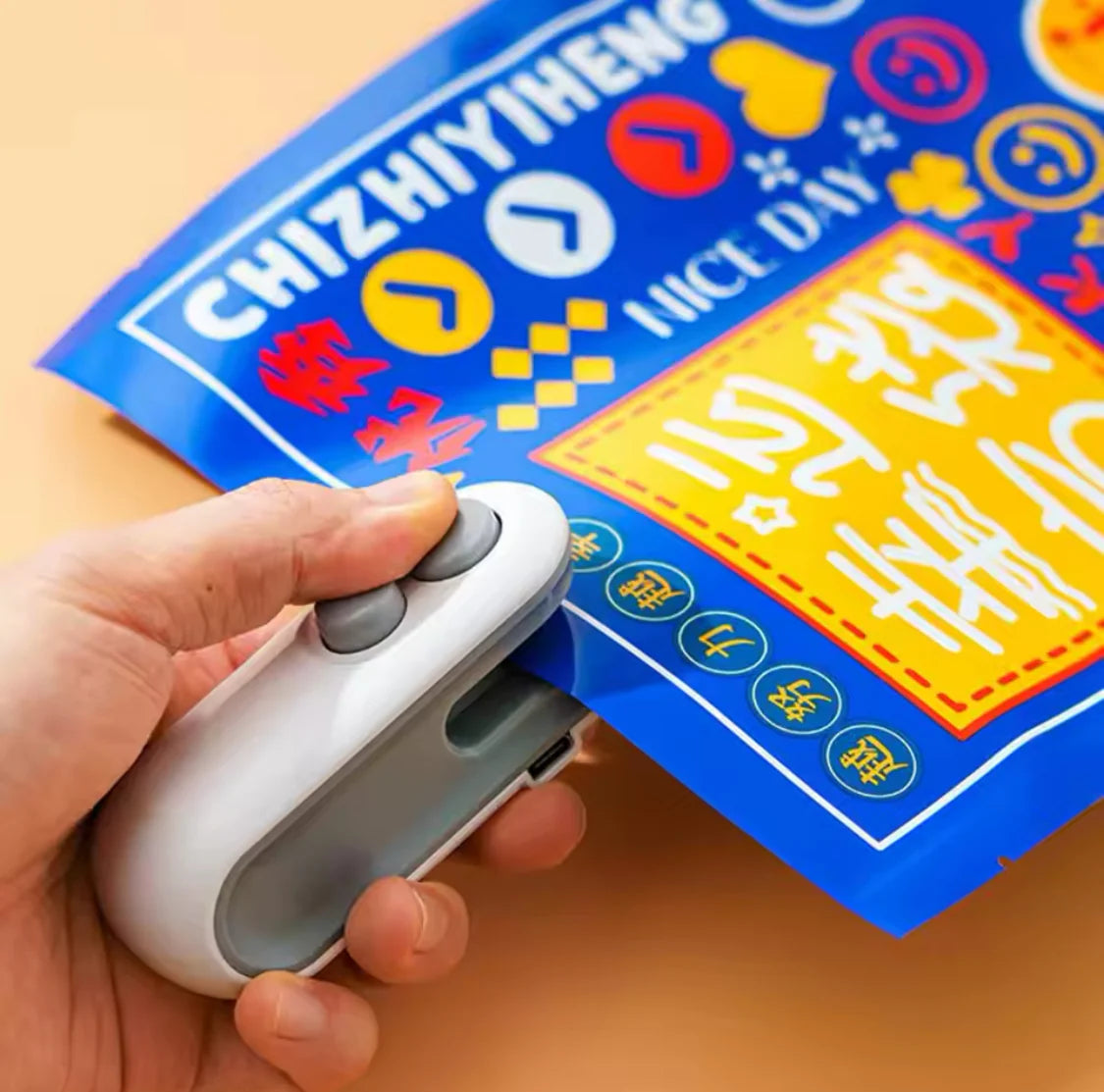 This rechargeable bag sealer is a compact and portable device that seals and cuts plastic bags with ease. It creates an airtight seal to lock in freshness and prevent spills. Ideal for use in kitchens, travel, or daily storage.